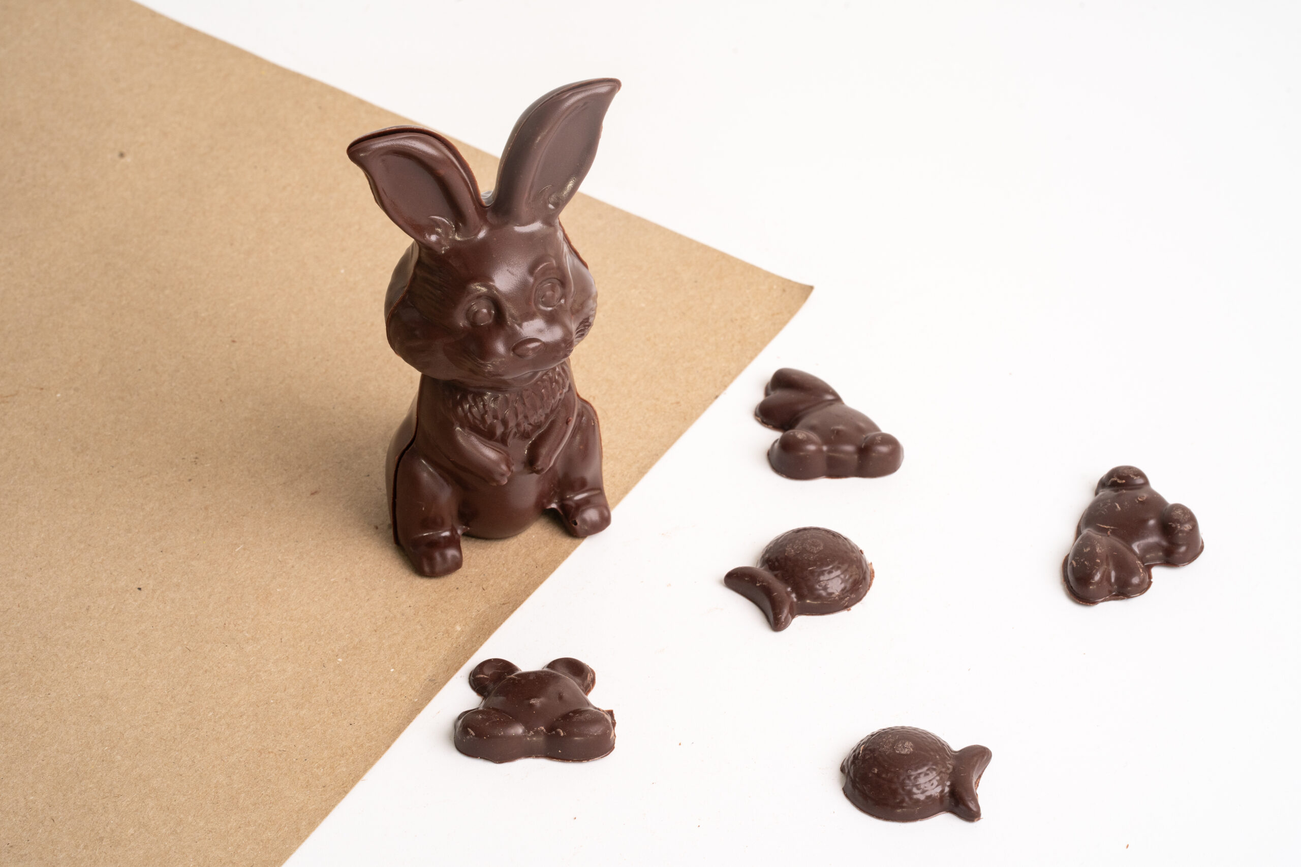 Moulage de Pâques garni de friture en chocolat.