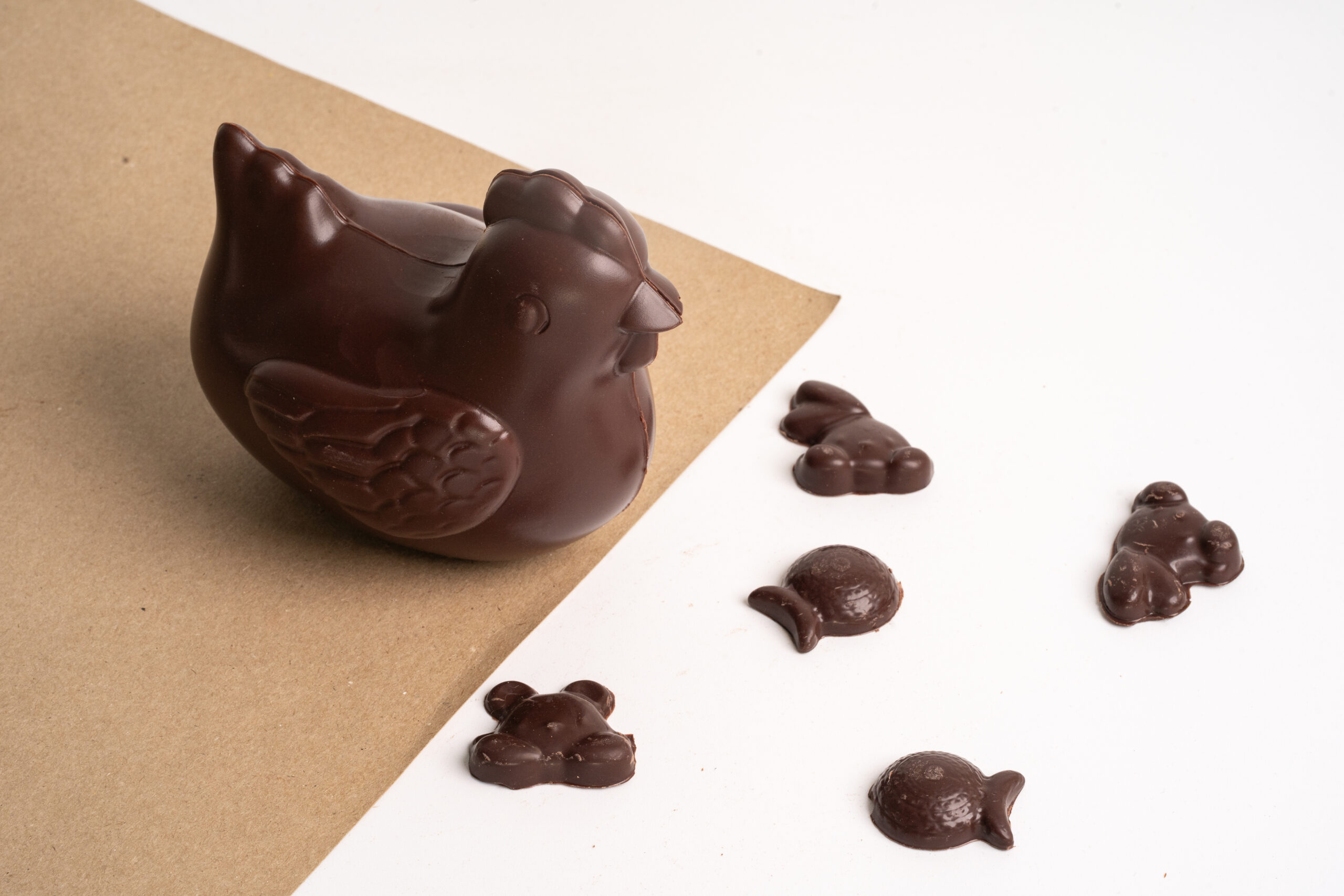 Moulage de Pâques garni de friture en chocolat.